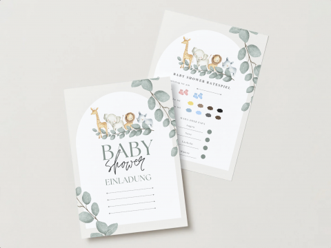 Unsere liebevoll gestalteten Einladungskarten für Feiern wie etwa einer Babyshower sind perfekt, um Gäste zu einem unvergesslichen Event einzuladen! Jede Karte ist nicht nur eine Einladung, sondern auch eine kleine Vorschau auf die aufregenden Spiele, die dich und deine Freunde während der Feier erwarten. Die fröhlichen, bunten Designs machen Lust auf eine fröhliche Zeit voller Lachen, gemeinsamer Erlebnisse und jeder Menge Babyspaß!